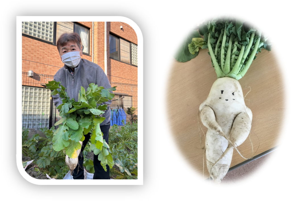 園芸委員や、ご利用者様と土の中から大根を